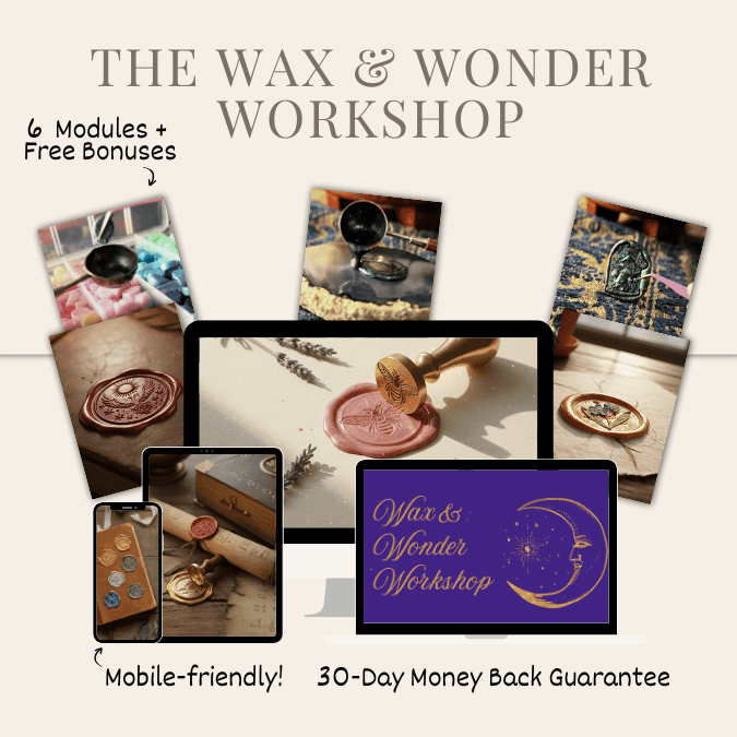 The Wax & Wonder Workshop, you’ll also get exclusive access to my private wax seal community: a warm, creative corner of the internet where beginners and seasoned crafters can share, learn, and create together.